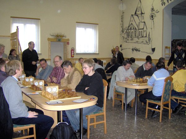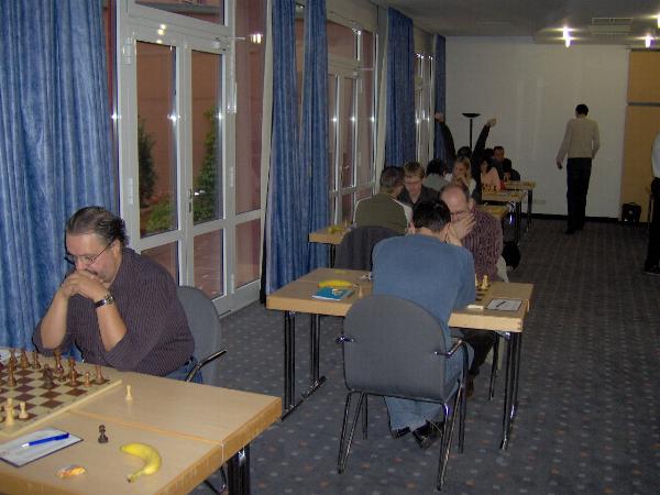 Noch kurz zu den Einzelergebnissen: Trotz der ersten Niederlage sind 5,5/7 für Conny Jahn weiter Spitze. Erwähnenswert sicher auch die 5/5 von Gunter Sandner und die 5/6 von Jens Windelband.