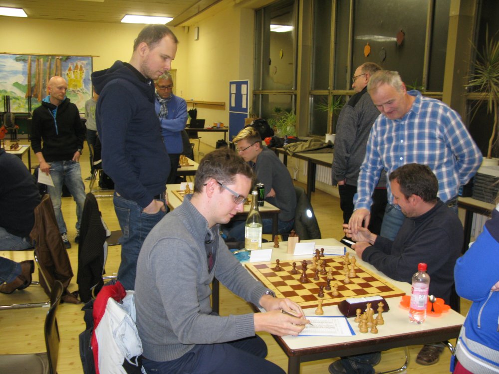 In Staffel B war Sangerhausen gegen nochmals aufgerüstete Kasseler, die u. a. drei IM, zwei FM, ein titelloses Spitzenbrett mit ELO 2450 aufboten, klarer Außenseiter. Unter diesem Gesichtspunkt können sich 2,5 Brettpunkte durchaus sehen lassen, zumal Youngster Henning Rudolf an 8 mit einem Sieg gegen einen nominell deutlich stärkeren Gegner einen tollen Einstand feierte.