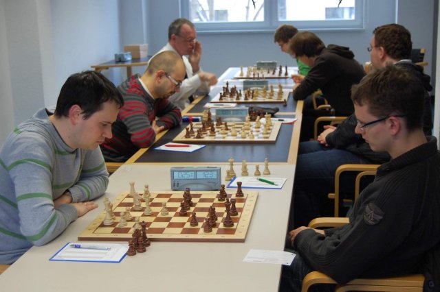 Am Ortseingang wurde der tiefgreifende Aufstellungspoker beendet und mir wurde mitgeteilt: "Du spielst an Brett 4!" Vorher musste Martin noch hoch-und-heilig versprechen am Spitzenbrett zu gewinnen und Simon platzierte sich an Brett 3. Dabei stellte er fest, dass dieses Brett eigentlich das wichtigste ist, denn im Zusammenspiel mit dem 1. Brett konnte das Spiel in die richtige Richtung gestaltet und die Punkte mit elbabwärts genommen werden.