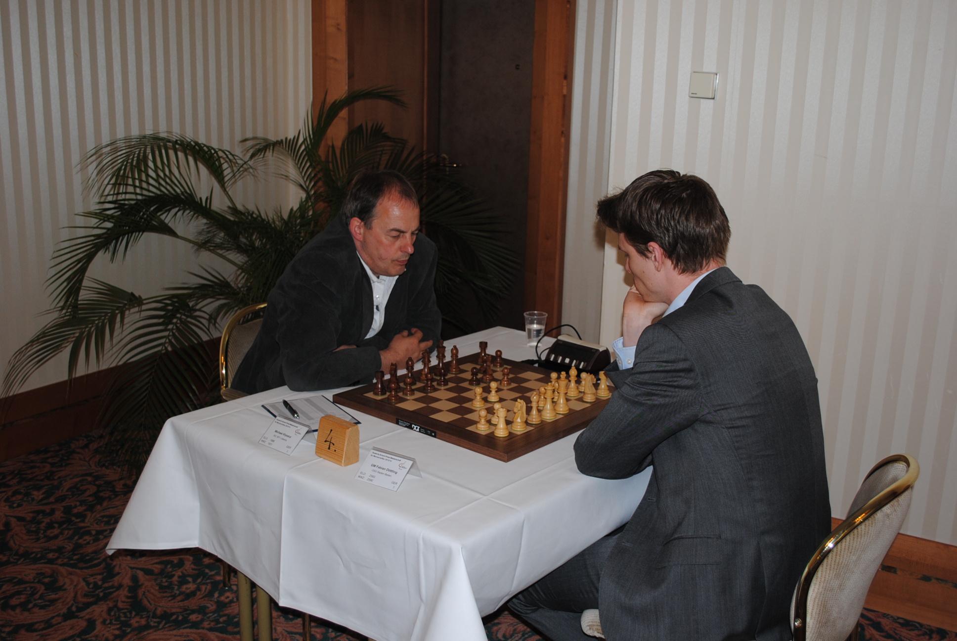 Da trafen zwei Vereine aufeinander, deren wirtschaftliche Grundlage hätte asymmetrischer nicht sein können. Vier Großmeistern, darunter mit Arkadij Naiditsch sowie Liviu-Dieter Nisipeanu die Nr. 1 und 2 der deutschen Rangliste, saßen vier Amateure gegenüber. Vier Großmeister, die mit Sicherheit für ihre Leistungen entlohnt wurden, die ihr Essen und ihre Übernachtungen erstattet bekamen und die bestimmt auch nicht auf eigene Kosten anreisen mussten. Das machen vor allem die Sponsoren möglich. Zu den Baden-Badener Sponsoren dürfen sich die Löberitzer nun durch den vollzogenen Fahrtkostenausgleich auch zählen. Wir sind stolz darauf.