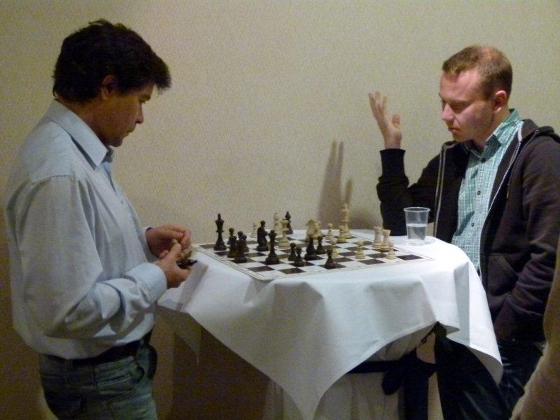 Bei uns bekam es Brain mit der neuen deutschen Nummer 2, dem ehemaligen Magdeburger Nisipeanu zu tun, Normi durfte sich an der deutschen Nummer 1 Naiditsch versuchen und Holly sich mit dem Weltklassetrainer Dautov gütlich halten. Natürlich waren wir völlig chancenlos. Mein ehemaliger Verein SC Heusenstamm hatte es im Viertelfinale zwar immerhin auf ein 2zu2 geschafft, aber Baden-Baden ließ nun gar nichts mehr anbrennen und ersetzte Drabke und Schmaltz durch die beiden Spitzenbretter der deutschen Nationalmannschaft.