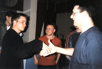 Somit war uns Platz 2 sicher. Großes taktisches Geplänkel dann im "Spiel um Platz 1" zwischen Bischofswerda und uns. Beide Teams hatten alle anderen Spiele gewonnen. Den erst- und einstmaligen 0:1-Rückstand konnten wir schnell ausgleichen. (1:1) auch das Resultat nach 10 min. Spannung pur also vor dem Showdown. Da wir über das bessere Torverhältnis verfügten, reichte uns zum Gesamtsieg ein Unentschieden. "Bulle" Kurthi hält den ersten Schuß! Super! Holly verschießt knapp. Uuuaaahhhhh!! Spannung wieder da. Danach Kurthi machtlos. Nun Kurthi. Er muß treffen. Er tritt an. Er schießt. Er trifft!! Sensationell! Kurthi schießt uns zum Fußball-Sieg! Der Mann ist und bleibt unverkäuflich!!