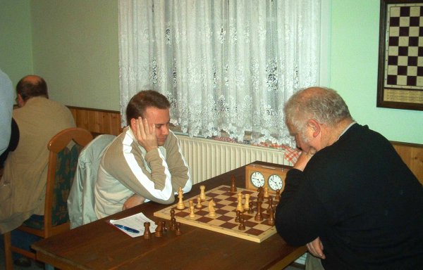 Mit der vorletzten Runde der SG-Blitzmeisterschaft startete unser Pokalwochenende. Nachdem unsere langfristige Mannschaftsfindungsphase kurzfristig hinfällig wurde, fanden wir uns am Freitag zum Training und Blitzen in Löberitz ein. Da man ja bekanntlich nicht zwei gute Turniere hintereinander und schon gar nicht am gleichen Wochenende spielen kann, beschloss ich beim Blitzen einen Gang (oder auch den ganzen Motor?) rauszunehmen und Brain die verdiente Trophäe zu überlassen. Was aber keine negativen Auswirkungen auf sein Spiel am Samstag haben sollte. Holly wählte die Variante des verpassten Zuges und kam so gänzlich ums Blitzen drum herum. Wie Haralds Partie bei der KEM Dessau ausging, weiß ich nicht, aber in Anbetracht seines sicheren Sieges am Samstag kann es nicht so gut gelaufen sein?! (Anmerkung Riker: Harald hat kampflos gewonnen. Schöne Pointe, gelle? Kleiner Tipp für Effi und dich: Die lesenswerten Seiten anderer Vereine sind oft nur wenige Klicks entfernt ...) Oder sollte meine These Lücken aufweisen, siehe Brain? Wenigstens ließ sich Holly noch auf eine Blitzpartie mit mir ein, die den richtigen Aufbau für seine morgige Partie zeigen sollte. Auch ein mit allen Statistiken und Varianten ausgestatteter Brain schnappte noch eine Eröffnungsfeinheit von Holly auf, die am nächsten Tag prompt umgesetzt wurde.