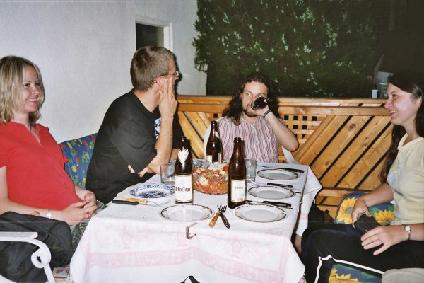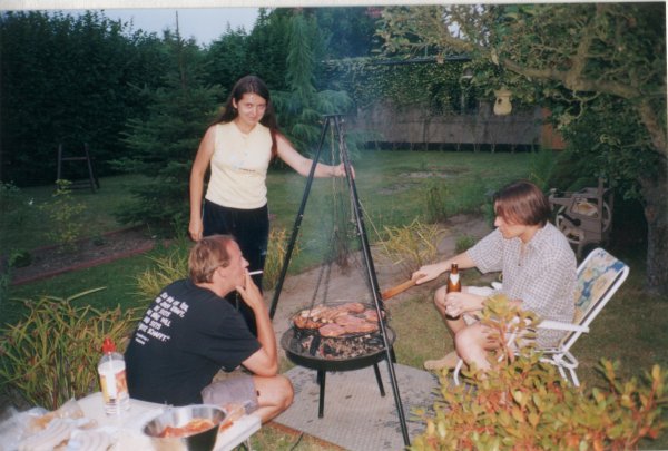 KlN & Normi present themselves well prepared. Irina & Valeria, Mikly, Riker and Henning straightaway feel calm & cool. Also cool Normi is carrying out his duty at the hot grill. Salads and bread are get a try and are declared as delicious. Normi is set off duty and dispatched towards Bitterfeld.Bitterfeld, July 30th evening
