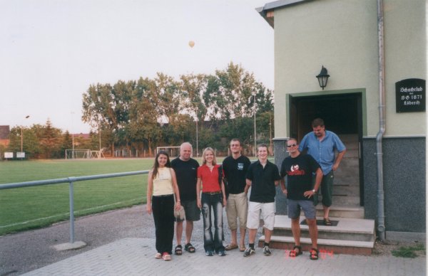 A red Xantia arrives the car park in front of the sports area. The four passengers, three speaking Russian, leave the car and pay their respect to the local chess-club. Hosts and guests of this night get in touch with each other for the first time. The president remains unfazed. Beer still is available. A photo will bring the club-plate to Moscow.Wolfen, July 30th evening