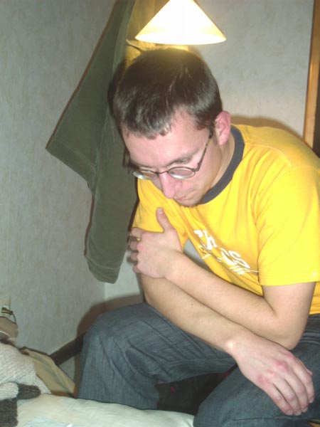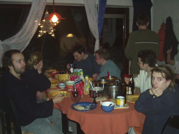 Es gibt Nudeln!!! Es schmeckt wie immer vorzüglich und es ist zwar so, dass sogar wenn man 2 Tische nebeneinander stellt, der Platz immer noch nur für 8 Rikerty reicht, doch die restlichen 3 sitzen bequem auf der Couch. Coach kommt vorbei und erfährt, dass er morgen gegen Effi spielt. Obwohl Fakten (beide hatten in der 4.Runde Weiß) und Coach selbst ("ich müsste doch morgen einen schwächeren kriegen") dagegen sprechen, dauert es nicht lange, bis es Effi gelingt, ihn davon zu überzeugen, dass es wirklich wahr ist. Inzwischen sind Elli und FCB schon längst da, und Effi weiß natürlich, dass er seine nächste Partie gegen Ole aus Dänemark spielen wird. Während Coach diese Zeilen liest, wird ihm zum ersten Mal klar, dass er verarscht wurde. Am nächsten Tag erklärte Effi ihm, dass es neu ausgelost wurde, und Coach hat es natürlich sofort geglaubt. In diesem Glauben wurde er auch belassen, aber heute kommt die Wahrheit ans Licht.