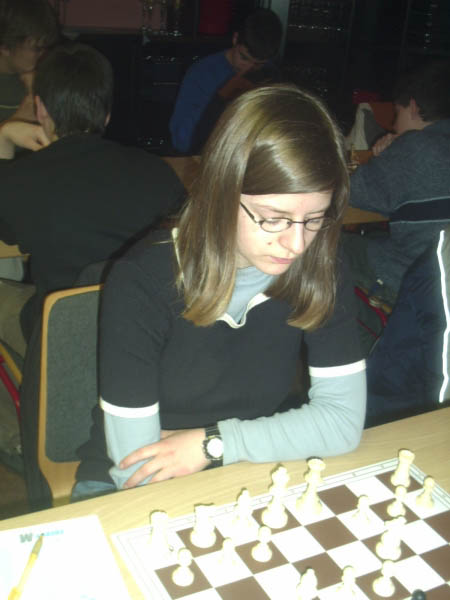 Franzi wird sicher nicht zufrieden sein. Der Auftakt war vielversprechend. Gegen die mehrfache Landesmeisterin Christine Hofmann erhielt Franzi eine chancenreiche, aber auch komplizierte Stellung. Das wird man sich noch einmal gründlicher anschauen müssen. In der Analyse war ein gut aussehendes Bauernopfer auf dem Brett, das aber nicht leicht zu finden war und dessen Konsequenzen auch im Nachgang nicht so klar erscheinen. Als es nicht recht weiter ging, folgte (m. E. zur rechten Zeit) ein Remisgebot. Danach zwei Siege gegen die spätere Letzte und gegen Sandra Völs, die ansonsten gegen die Spitze remisierte. Das waren eigentlich sehr gute Voraussetzungen. Dann allerdings ein äußerst unglücklicher Verlust gegen Andra Thiele aus totaler Gewinnstellung heraus. Schwer zu sagen, was hier schwerer wog. Die Denkblockade im mehrfach gewonnenen Bauernendspiel oder der falsche Plan zuvor, bei total luftiger gegnerischer Königsstellung die Vereinfachung in ein höchstens minimal besseres Endspiel zu suchen, das allerdings zunächst von Andra prompt misshandelt wurde. Auch nach dieser Partie hätte Franzi bei dem gemächlichen Tempo im Feld noch die Spitze angreifen können, aber die Niederlage wirkte offensichtlich nach, und gegen Laura und vor allem Susann fehlte die letzte Konsequenz. Zum Schluss wurde Franzi von Carolin Priese überrannt, was noch einen Medaillenplatz kostete - schade.