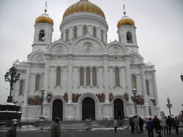 Mächtig erhebt sich alsbald die größte Kirche der Stadt, die Christi-Erlöser-Kirche in den grauen Winterhimmel. Stilistisch sieht man ihr die gut 100-jährige Geschichte leicht an, zumal Kirchen dieser Größe und mit diesem Aufwand ja eigentlich immer aus vergangenen Jahrhunderten stammen. Doch wie schon am Beispiel der Dresdner Frauenkirche erstehen Monumente dieser Art zuweilen auch noch zu Zeiten von Wireless Internet, Joystick, Marssonden, Klonen und Gen-Tomaten. Der Fall der 1883 erstmals erschaffenen Christi-Erlöser-Kirche demonstriert mögliche Abhängigkeiten von Willkür über die eigentliche Existenzgewinnung hinaus selbst
