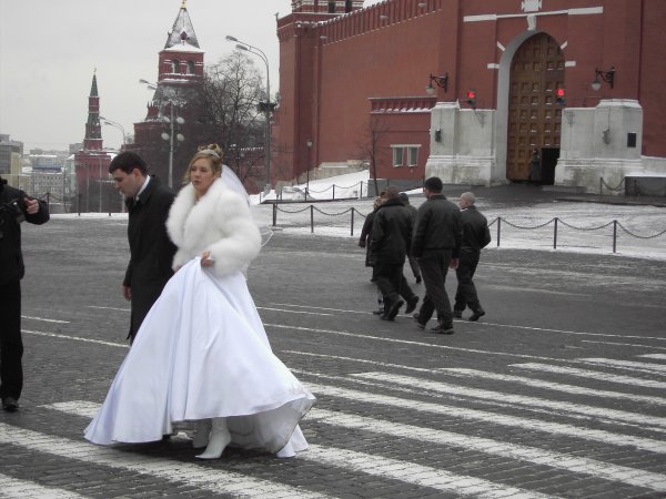 Zeugnis ablegt, über die Erbauung der Basilius-Kathedrale im 16.Jahrhundert unter Iwan dem Schrecklichen, die aus neun einzelnen Kirchen besteht, jede davon als Symbol für einen militärischen Sieg errichtet, wovon der über die Tataren in Kasan der wichtigste war und entsprechend im höchsten Turm gipfelt. Wir lernen auch die Fahne über dem Regierungssitz im Kreml zu deuten, welche die Anwesenheit des Präsidenten signalisiert und sind dabei von zahlreichen Hochzeitsgesellschaften umgeben, bevor wir den Zentrumskern verlassen.