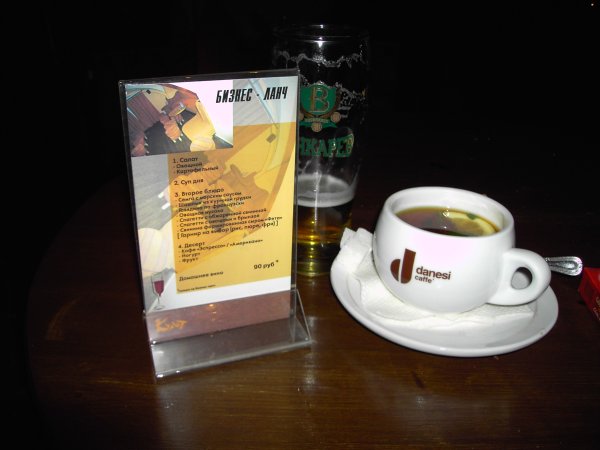 Anderntags nahmen wir Dennis & Jakob nebst genügend Roubles dorthin mit. Die späteren Streifzüge trennten unsere Wege. Während die Dänen in einem Klub Dänen trafen und einige Abenteuer aus dem "Karma" mitnahmen, wanderten wir zum Klub "Kult". Vor dem Einlass in das Kellergewölbe galt es noch den obligatorischen Türsteher zu überwinden und dann erschloss sich ein gemütliches Refugium à la Magdeburger "Bunker", denn Spiele kursierten auf vielen Tischen. Als wir um ein Backgammon und Bier bitten, wird uns beschieden, ein Spiel gäbe es nur bei Bestellung eines Tees. Also