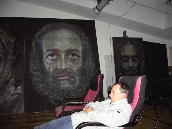 den Ball in das gegnerische Zielfeld zu schieben. Wer von beiden entspannter ist, hat Erfolg. Neben einigen netten Animationen und Applikationen verbringen wir die meiste Zeit in einer Art Chillout-Room, wo zu sphärischen Klängen physiognome Metamorphosen plastiziert werden. Den Abschluss bildet eine Gemäldegalerie. "Alice in Wonderland" gefällt mir, doch der Preis von 12.000 Dollar sprengt leider um Haaresbreite mein Budget. Die Galeristin Anna ertappt mein Englisch und bittet um Mithilfe bei der Übersetzung eines russischen Textes, der an potenzielle Kunden im Ausland gehen soll. Als das Museum