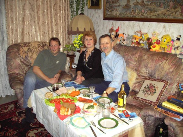 Vor allem die Menschen, denen wir begegnen durften, trugen wesentlich zum hoch erfreulichen Resümee bei. Zunächst natürlich die Fortsetzung des ansonsten bis dato via Mails geführten Kontaktes zu den ehemaligen Mitfahrerinnen Irina & Valeria. Leras Familie verwirklichte den Begriff der Gastfreundschaft in Reinform, indem sie mich über das erste Wochenende in ihrer relativ kleinen Wohnung (48qm) aufnahm und rührende Aufmerksamkeit zuteil werden ließ. So lieh mir unter vielem anderen Valerij seine Handschuhe gegen den Frost von Zelenograd und zum Abschied verhalf mir die mütterliche Wundermedizin noch kurzerhand bei der erfolgreichen Bekämpfung einer aufziehenden Grippe.
