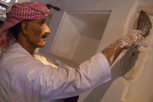 Areal eines Museums nicht, welches versucht, den städtebaulichen Werdegang Dubais wiederzugeben. Wir sind weit und breit die einzigen Interessenten und offensichtlich kaum erwartet, werden aber freundlich herumgeführt. Hinter dem Museum wird wieder eine ausladende Baustelle sichtbar - die Altstadt von Dubai soll ganz neu erstehen! Neu ist auch nötig, da wohl kein Gebäude in Dubai viel älter als zwanzig Jahre ist, es nie so etwas wie eine Altstadt überhaupt gegeben hat und die sonstigen rudimentären Reste aus der Vorzeit kaum