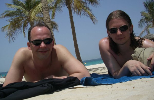 Doch nicht nur unsere Aufmerksamkeit gehörte dem deutsch-deutschen Duell zwischen Rolf und Andi. Natürlich blieb das Vorfeld selbst am Strand von "Al Mamzar" nicht gänzlich frei von Flachsereien bis hin zu, allerdings einseitigen, Remisavancen. Aber am Brett wurde verbissen gerungen. Manch' einer der übrigen Teilnehmer wunderte sich über diese beiden deutschen Amateure. Spieler gleicher Nationalität und etwa gleicher Stärke schaffen ansonsten nur selten mehr als ein paar Züge. Doch hier wurde nicht etwa die Urlaubszeit verlängert, beinahe hätten wir sogar noch das letzte Hotel-Transfer-Shuttle verpasst.
