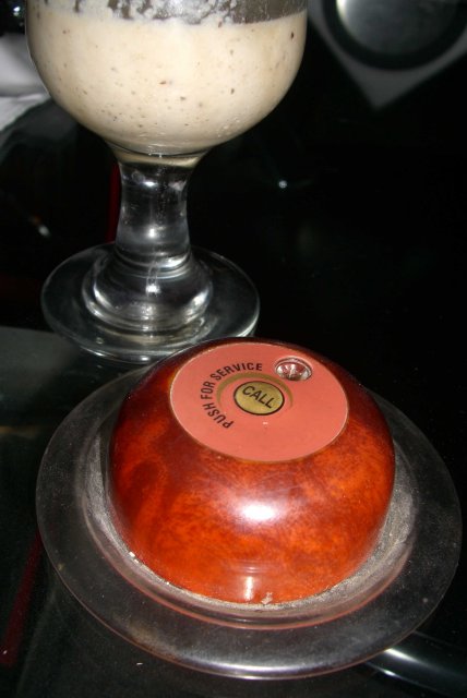 Am Abend schlendere ich mit Andi vom Spielerhotel weg, den zunehmend mondäneren Boulevard hinunter, bis wir uns zur Erprobung des 5th-Avenue-Cafés entschließen. Neben augenweidlerischem Interieur weisen auch die häufig Shisha-umlagerten Außentische eine Besonderheit auf – die Service-Klingel. Wir nutzen sie einmal eher aus Versehen und erfreuen uns verblüfft am Funktionieren. Auch die Getränke- und Speisekarten sind pure Nahrung für jede Phantasie. Die halbe Liste lassen wir uns vom Service erläutern. Besonders reizt mich das Getränk Mahjoon. Der Kellner erläutert mir, das käme aus Iran und bestünde aus einer Mischung von Joghurt, Bananen, Datteln, zerriebenen Mandeln und weiteren Geheimnissen. Ich bestelle diese außerordentlich schmackhafte wie sättigende Kreation natürlich.
