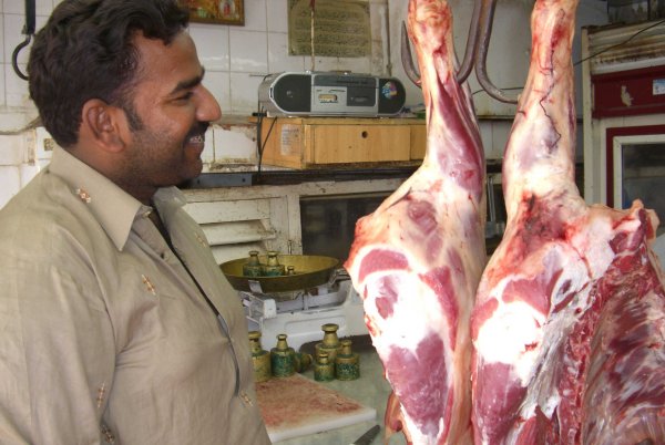 Gemüsehändler schenkte uns einfach ein paar der neugierig begutachteten Gurken. Und als wir die sich daran anschließende Schlachtermeile passierten, luden uns die gelangweilten Meister des Fleisches zu fachkundlichen Begehungen ein und konnten gar nicht genug davon bekommen abgelichtet zu werden. Jeder wollte mit auf ein Foto. Sie würden im Internet zu sehen sein! Und jeder hatte ein strahlendes Grinsen und eine formvollendete Pose parat.