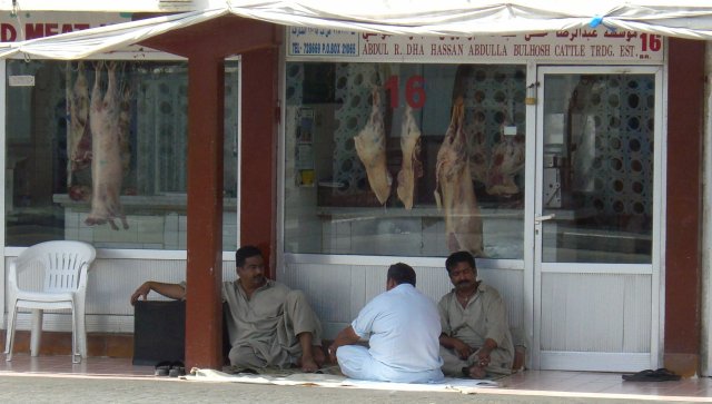 Einkommen betrüge pro Monat etwa 2000-2300 Dirham, also 400-460 Euro. Zwar sind die allgemeinen Lebenshaltungskosten jenseits der Luxusareale ausgesprochen gering (er verbraucht nur etwa 500 Dirham für Lebensmittel und 250 Dirham für Sonstiges), aber die Mieten sind vergleichsweise teuer. 750 Dirham muss er für ein einziges kleines Zimmer berappen. Den Rest seines Monatslohns, also 500-800 Dirham (ca. 100-160 Euro), schickt er an Frau und Kinder in Indien. Davon können diese dort sehr gut leben. Dafür sieht er seine