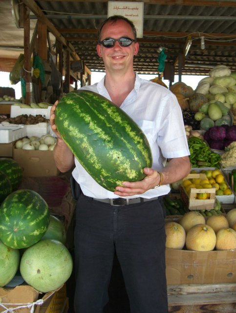 Zum verblüfften Erstaunen schloss sich dem Marktgebäude dahinter noch ein weiterer riesiger Obst- und Gemüsezeltmarkt an! Alle geöffnet und reich bestückt! Kunden allerdings auch hier Fehlanzeige! Angesichts der Verderblichkeit der dargebotenen Waren standen wir vor einem echten Rätsel – wer zum Kuckuck sollte das alles kaufen und verzehren? Zudem stammten die Lebensmittel ja noch nicht einmal aus heimischem Anbau, sondern kamen als Importe vorwiegend aus Indien und Iran. Solche Mengen, wann und für wen? Die auffallende Freundlichkeit und Aufgeschlossenheit der Leute dort lenkte uns aber schnell von unserer Ratlosigkeit ab. Ein