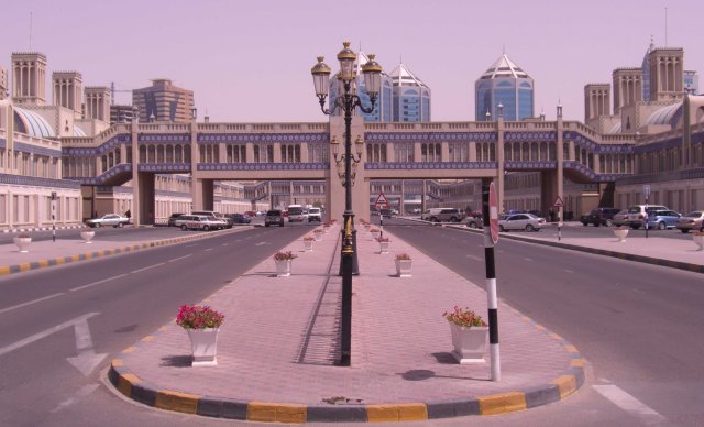 Anderntags steht ein Ausflug in das Nachbaremirat Sharjeh auf dem Programm. Andi begleitet mich. Die etwa halbstündige Fahrt führt zwischen den beiden Emiraten vorbei an einer weiteren endlosen Baustelle – hunderte Hochhäuser werden gleichzeitig aus dem Boden gestampft! Etwas abseits dieser Verbindungsstraße, kaum auszumachen, entsteht eine eigenständige Chinatown, wie der Taxifahrer erläutert. Dort wird eine ganze Stadt von Chinesen für Chinesen gebaut. Die Chinesen tauchen im übrigen Dubai kaum auf; sie alle leben fast ausschließlich auf der Baustelle.