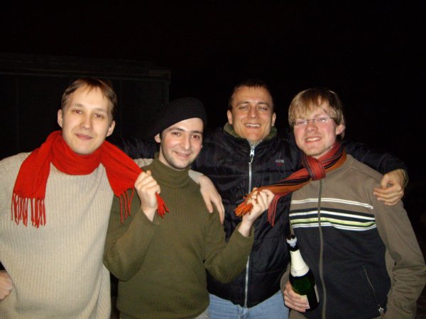 Es scheint das einzige Lokal zu sein, was am 1.01. offen hat, unter den Gästen fallen einige Schachspieler auf. 7 Mal wird das gleiche bestellt, nur Flash entscheidet sich anders. Beim Zusammenfassen der sportlichen Ereignisse der letzten Woche fällt irgendwann das Stichwort "Vierschanzentournee" und Franzis Jugendsünden, verbunden mit dem Fandasein von Martin Schmitt, werden aufgedeckt. Flash und ich rechnen, ob wir den Zug um 22.43 von Halle nach Magdeburg schaffen oder den um 00.09 nehmen werden müssen. Großzügige Angebote von Franzi im Auto, auf dem Dachgeschoss oder im Keller der Familie Beltz die zweite Nacht des Jahres zu verbringen, werden natürlich auch ernsthaft in Betracht gezogen.