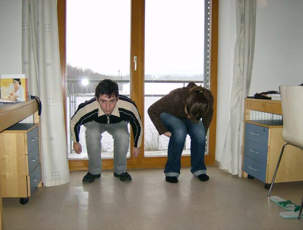 Die Pause zwischen den Runden wird zum Essen, Vorbereiten, Lesen (besonders beliebt und Yoga genutzt. Ja, Yoga. Unter der künstlerischen Leitung von Flash nutzen Franzi und Effi die Möglichkeit den Adler und einige andere Figuren aus der Yoga-Box auszuprobieren.