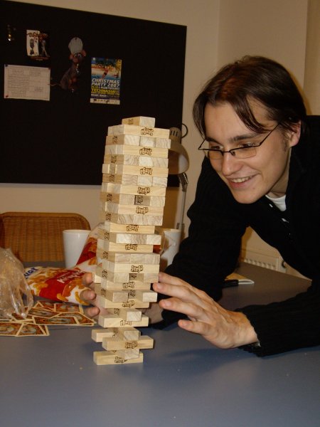 Als erstes Spiel des Jahres 2008 wird Jenga gespielt! Besonders Riker scheint sich seinem Alter bewusst zu werden und sieht sich als aussichtlosen Kandidaten, bei dem der Turm einstürzen wird. Nach mehreren Runden und einigen großen Wacklern passiert es bei JayJay, der auf einfache Steine mit Absicht verzichtet und den Adrenalinkick bei schweren Aufgaben sucht. Recht zeitig für Silvester geht man auch ins Bett, steht nicht nur die letzte Runde sondern auch die Rückfahrt bevor.